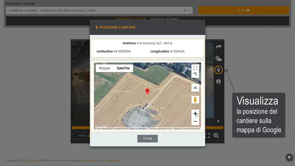 Questa è stata la nostra prima volta e non immaginavamo tutte le utilità che si possono avere con la TimeCam. Soprattutto la comodità che con una semplice installazione il primo giorno non abbiamo mai dovuto fare una manutenzione in 6 mesi ( aggiungo d’inverno!!!). E il cantiere è sempre sott’occhio anche per chi è più lontano e non riesce a passarci spesso e si riescono a tenere monitorate le tempistiche delle lavorazioni! Ringrazio ancora TimeCam e sicuramente ci saranno altre occasioni